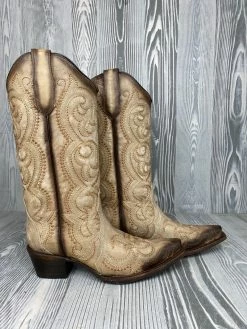 Corral Circle G Womens Natural/Black Python Embroidered Cowboy Boots – L5698