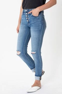 Kancan USA Kancan High Rise Button Fly Cuffed Hem Skinny Ankle Jean – KC8568M