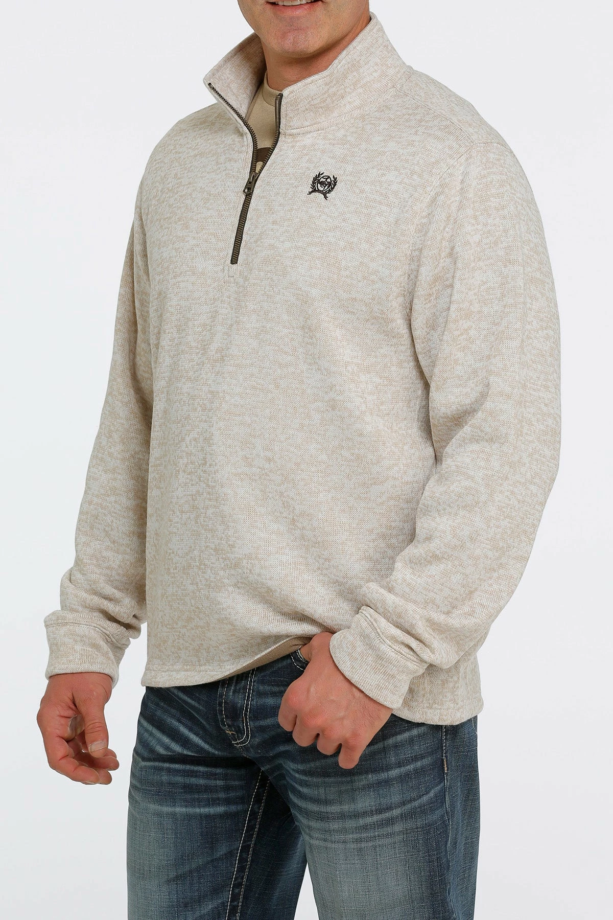 The perfect pullover for the cooler days ahead. This cream colored quarter zip pullover from Cinch is perfect for dress or casual wear and is a great weight for keeping the chill knocked off.