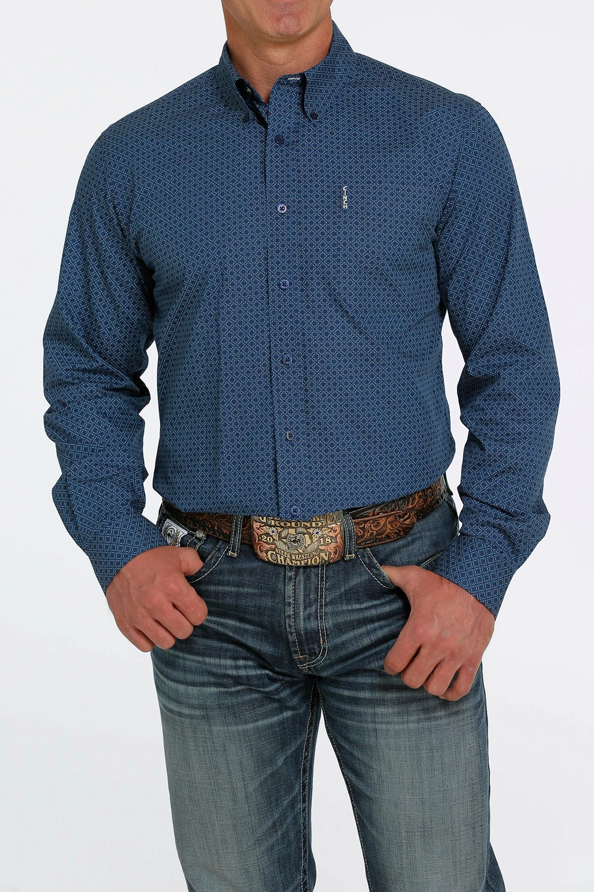 CINCH Modern Fit shirts are at the forefront of men’s western wear with countless options of prints, paisleys, plaids and bold solids. CINCH Modern Fit button-down shirts offer a convenient, hidden button-down collar and logo embroidery. CINCH Modern Fit western snap shirts include unique design details on the pockets and yokes and are typically adorned with marble or pearl snaps.