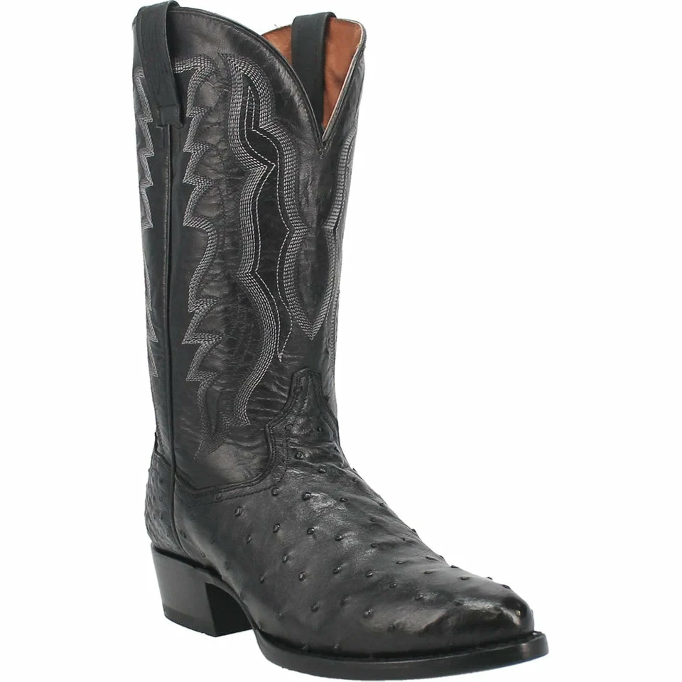 Men’s Dan Post Tempe Black Full Quill Ostrich R-Toe – DP2323