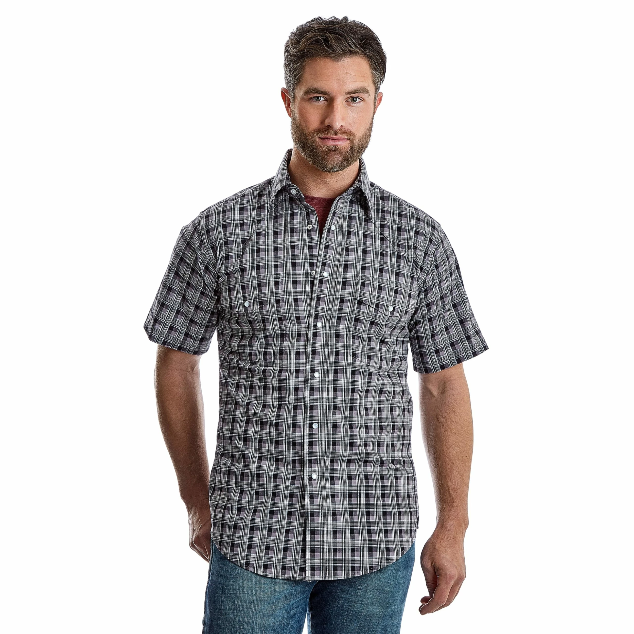 Mens Wrangler Wrinkle Resist Short Sleeve Short – Black/Grey                     Â