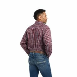 Men’s Ariat Wrinkle Free Omari Fitted Long Sleeve Shirt In Crimson – 10043859