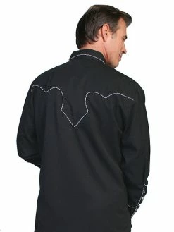 Nigro’s Western Store #1 Men’s Scully Jet Black Floral Tooled Embroidered Shirt – P634