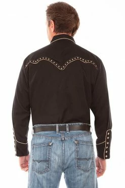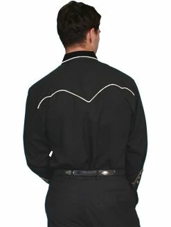 Scully Men’s Western Apparel – Solid Black / Cream Piping Shirt – P620