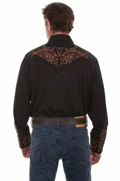 Scully Mens Floral Scrolls Embroidered Western Shirt Black – P870