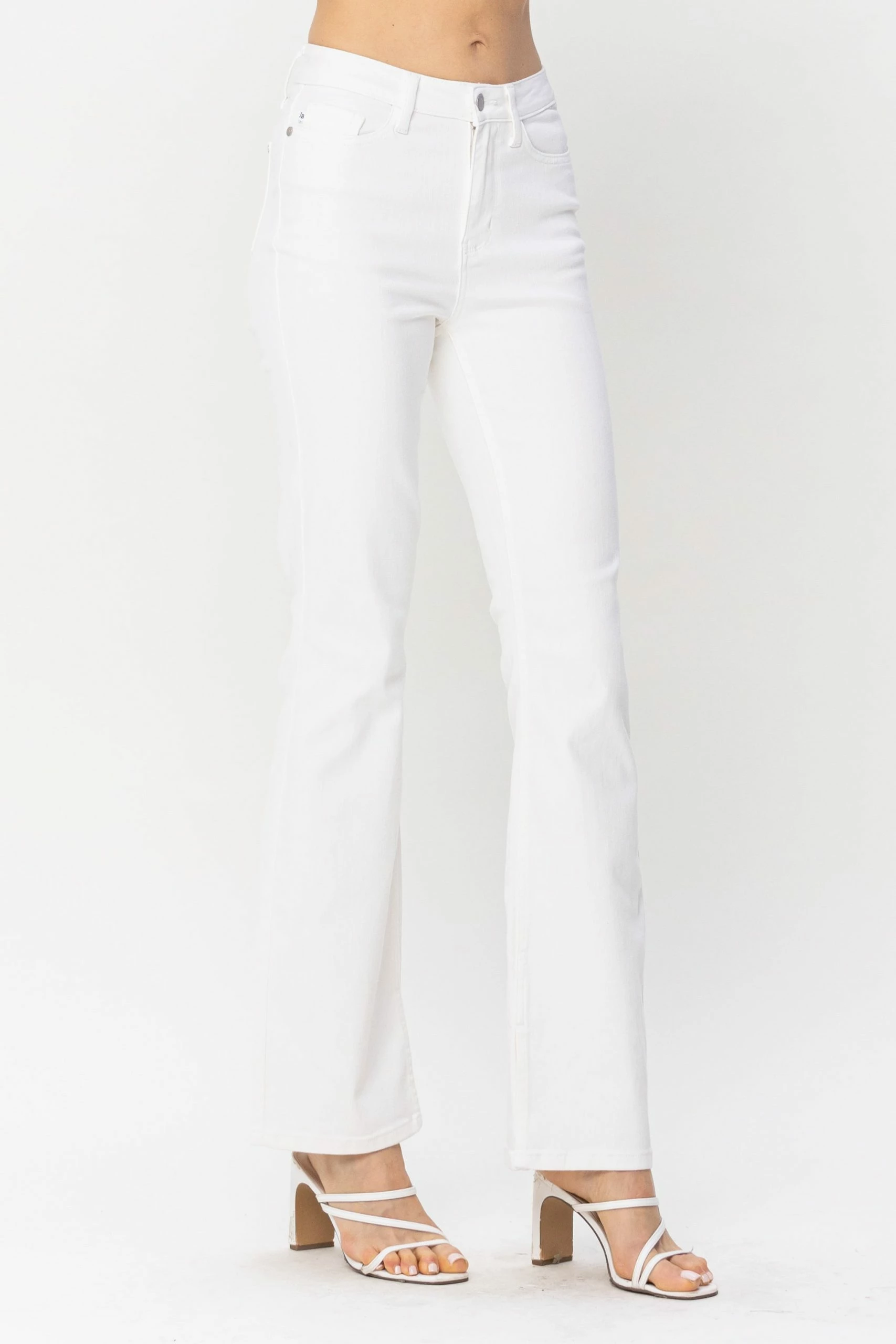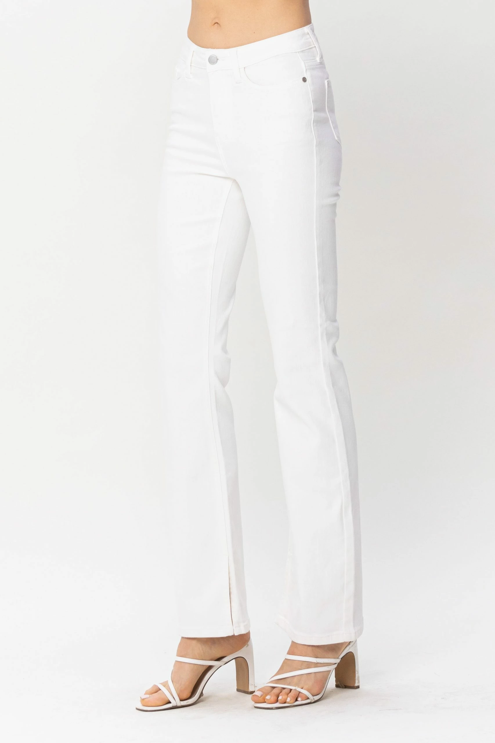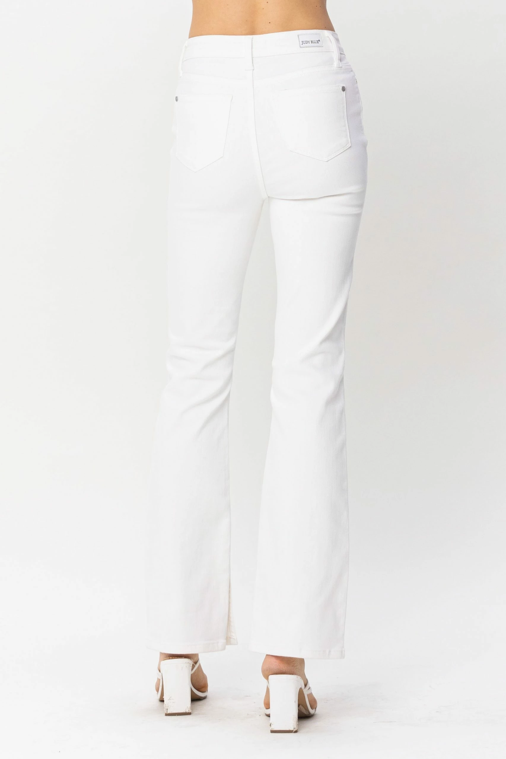 Ladie Judy Blue Midrise Bootcut in Pure White with Hem Slit