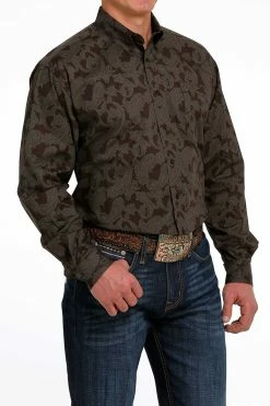 Men’s Cinch Green/Brown Paisley Print Button Down Western Shirt – MTW1105489