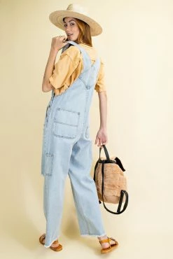 Easel Los Angeles Ladies Easel Self Distressed Washed Denim Overalls – EB41041