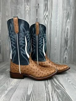 Men’s Rios Of Mercedes Umber Bruciato Full Quill Ostrich With 13″ Denim Kidskin Tops