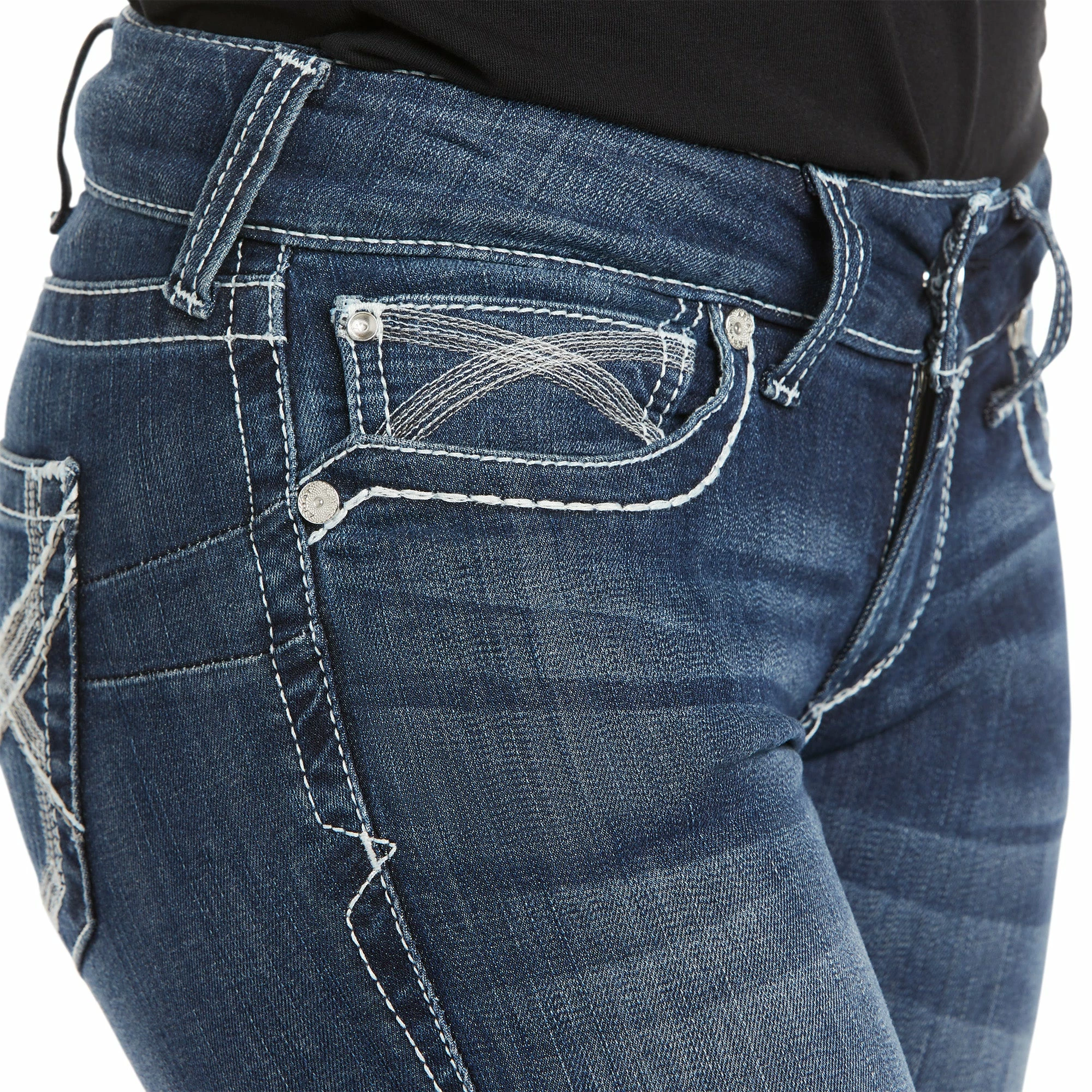 Rider tested and thoughtfully engineered, this mid rise, slim fitting style features a boot cut leg and performance stretch denim for added comfort that holds its shape and flatters yours.Â